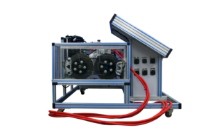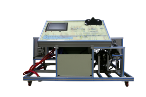 The platform consist the original permanent magnet synchronous motor of BY E5 electric vehicle, original instrument , diagnostic and detection panel, accelerator pedal, brake pedal device, aluminum bench and 15 inch display screen embedded with teaching software.
